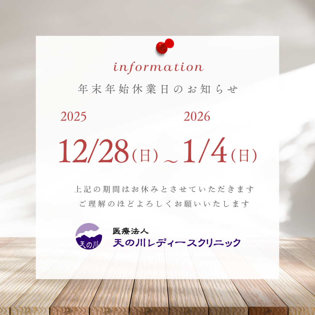 年末年始休暇のお知らせ 2025 12/04 NEWS December 4, 2025 目次年末年始休暇のお知らせ 当院患者の皆様 日頃より、当院への格別のご高配を賜り、厚く御礼申し上げます。下記日程におきまして、年末年始休暇とさせていただきます。 何卒、よろしくお願い申し上げます。 NEWS よかったらシェアしてね! URLをコピーしました! URLをコピーしました!